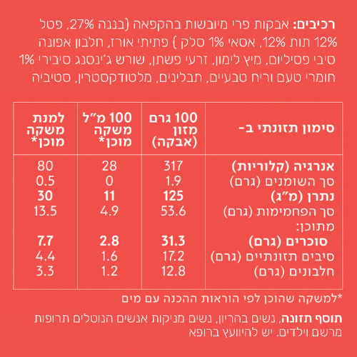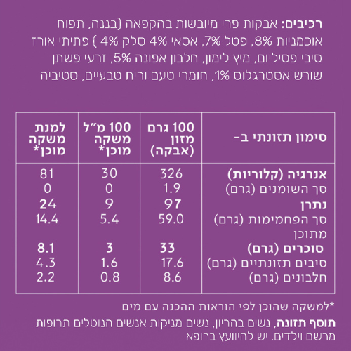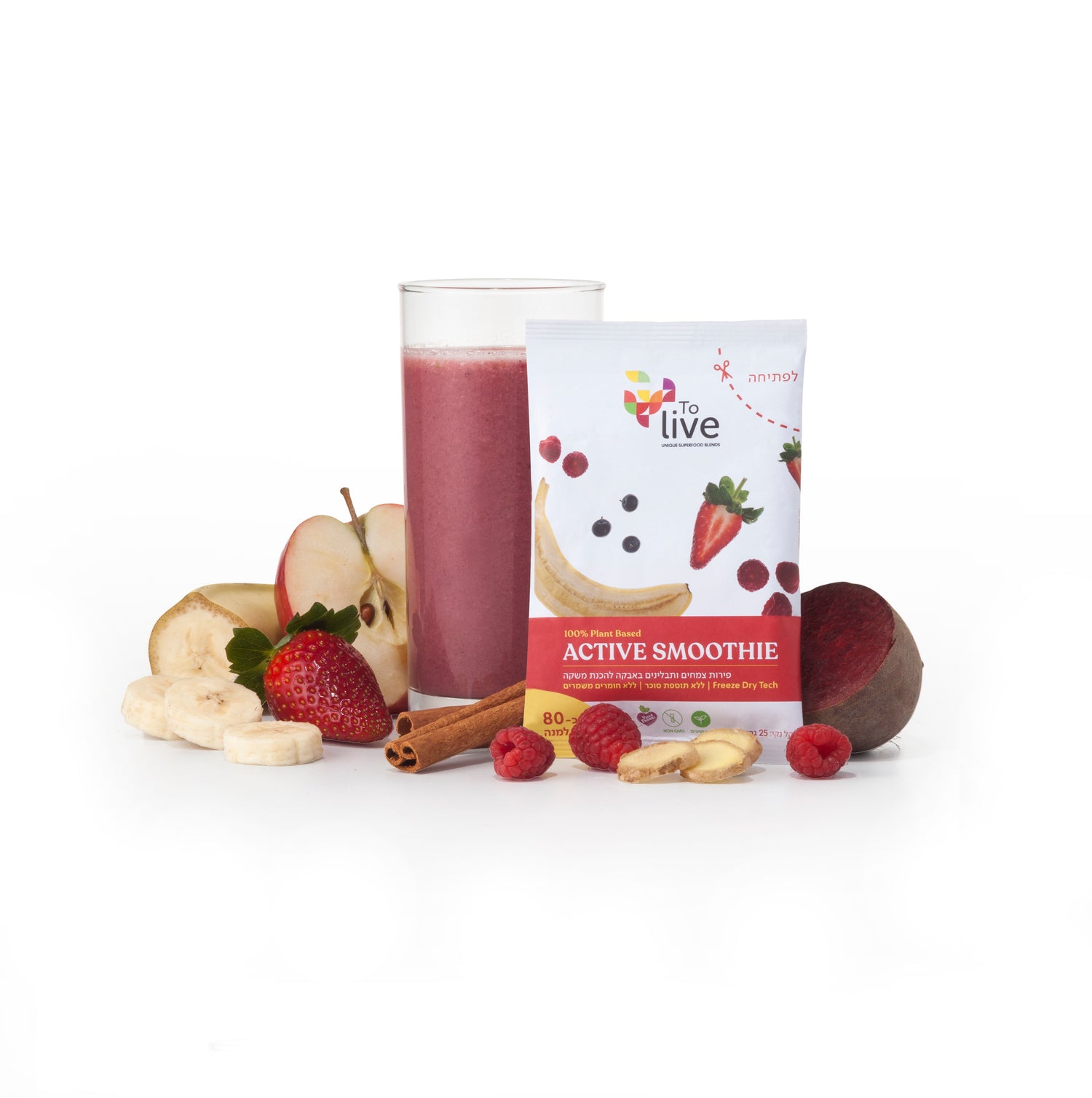 משקה פונקציונלי מעורר המעניק אנרגיה לאורך זמן. מכיל פירות יער אדומים כמו פטל ותותים, בשילוב של בננות, חלבונים וסיבים תזונתיים. עשיר בשורש ג'ינסנג סיבירי, הידוע כמעורר ומשפר יכולות גופניות (כמו כוח וסיבולת).